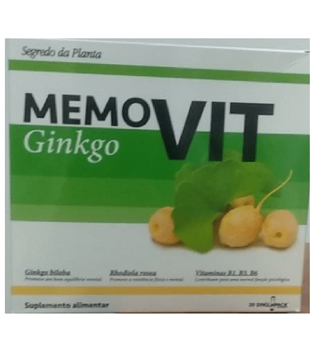 Memovit Ginkgo é um excelente revigorante das funções mentais. Ideal para casos de memoria, concentração, aprendizagem e stress. Combate a fadiga física e mental nos casos depressivos.
